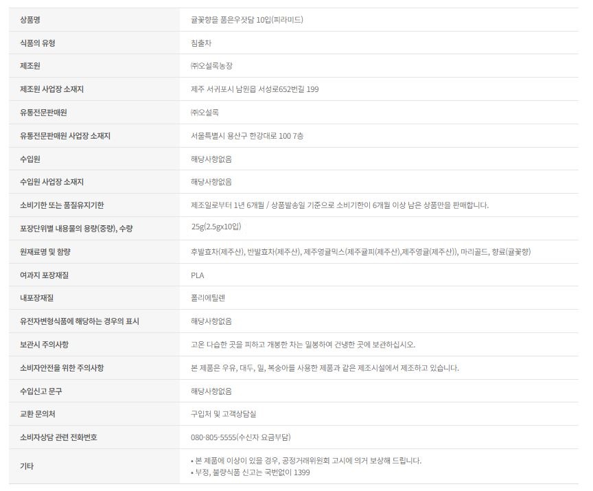 귤꽃향을 품은 우잣담(2g*10T/오설록)