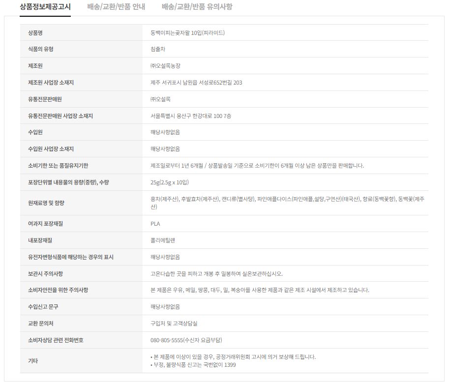 ■ 주원료.원료산지: 녹차 - 제주산