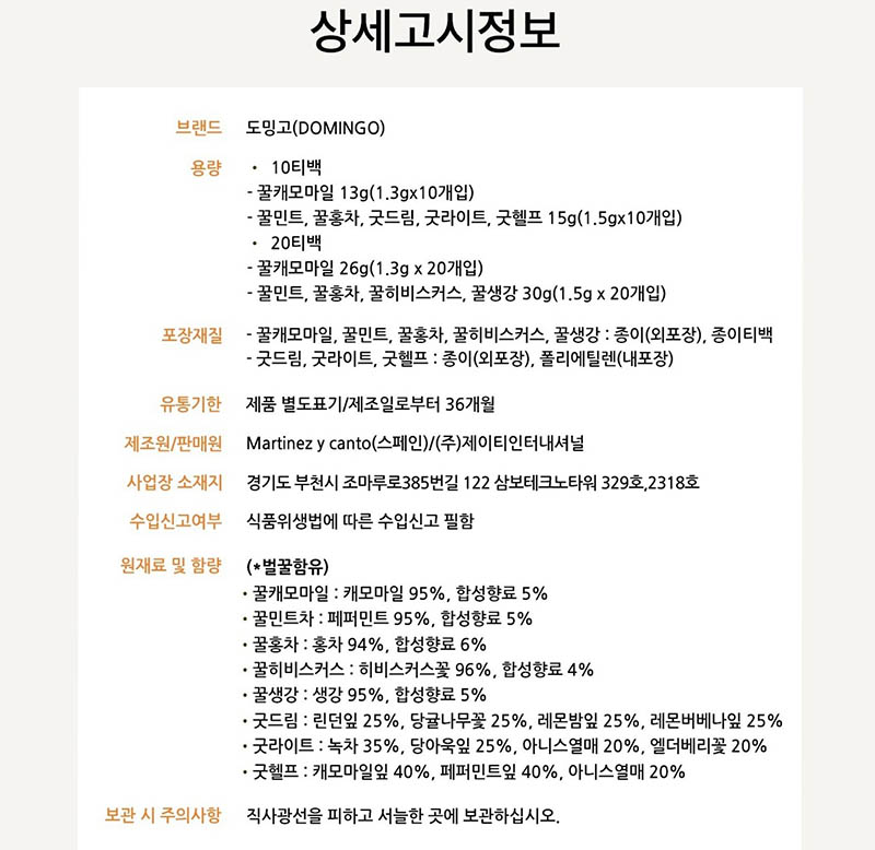 ■ 품명 및 모델명 : 도밍고 꿀생강차(1.5g*20T/도밍고)